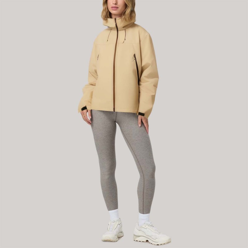 This women's outdoor jacket is designed for both outdoor activities and everyday wear. Its hooded design offers versatility in changing weather conditions and provides extra protection. Smooth zippers make it easy to put on and take off, while Velcro elastic cuffs offer an adjustable fit for enhanced windproofing and warmth. Two zippered pockets provide secure and practical storage for essentials. An elastic hem allows for adjustable fit, improving overall protection. Lightweight and durable fabric combined with a comfortable cut makes this jacket both comfortable and functional.