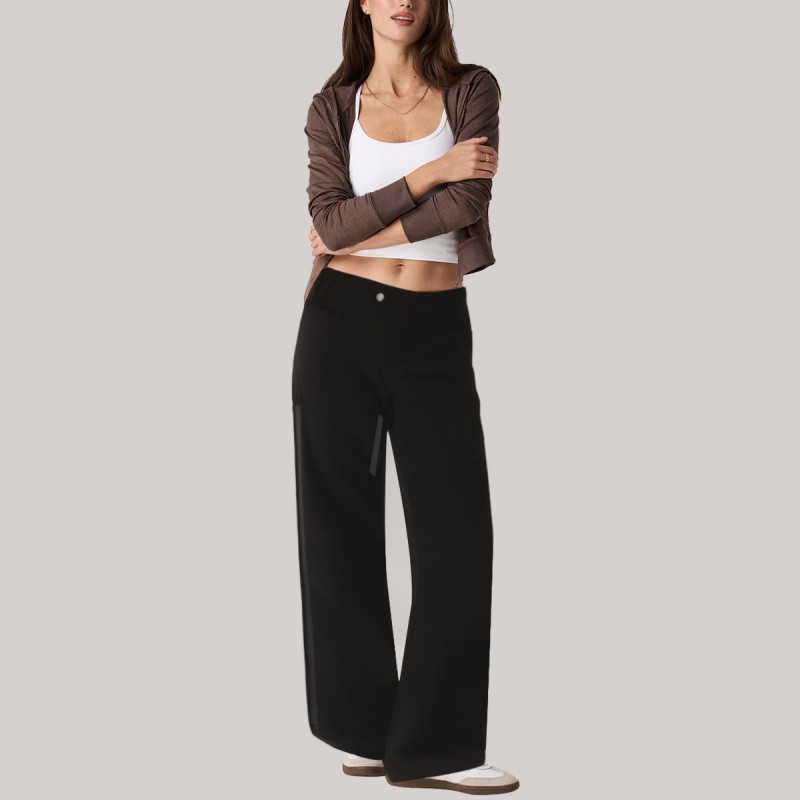 These women's windproof pants are designed for outdoor activities, combining waterproof and windproof performance to easily handle changing weather. The elastic waistband enhances comfort, while the side zippers make them easy to put on and take off, increasing practicality. Side pockets provide secure storage for small items, and the Velcro cuffs effectively prevent cold air from entering while highlighting a sleek, sporty silhouette. The overall design is simple and clean, suitable for hiking, camping, commuting, and everyday casual wear.