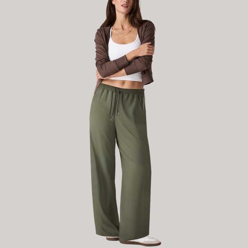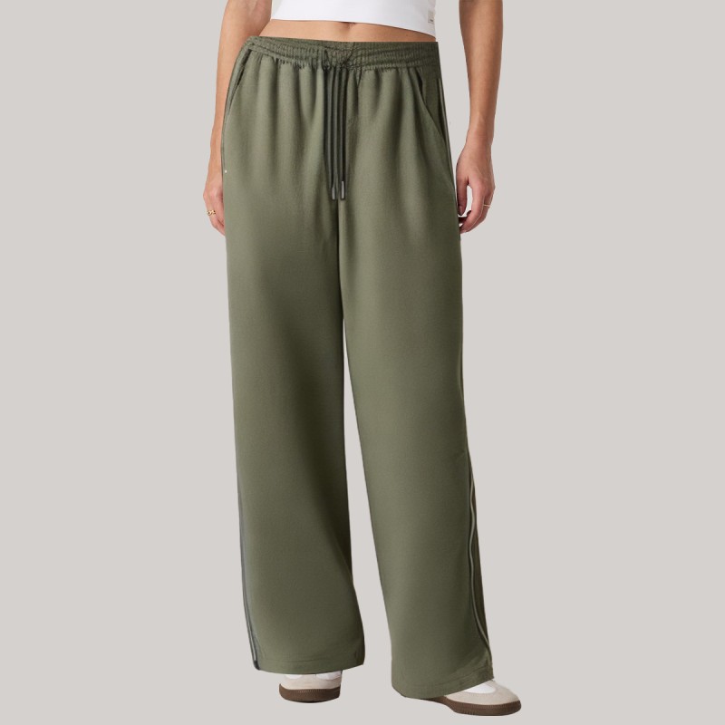 Green side-zip loose-fitting women's windproof pants