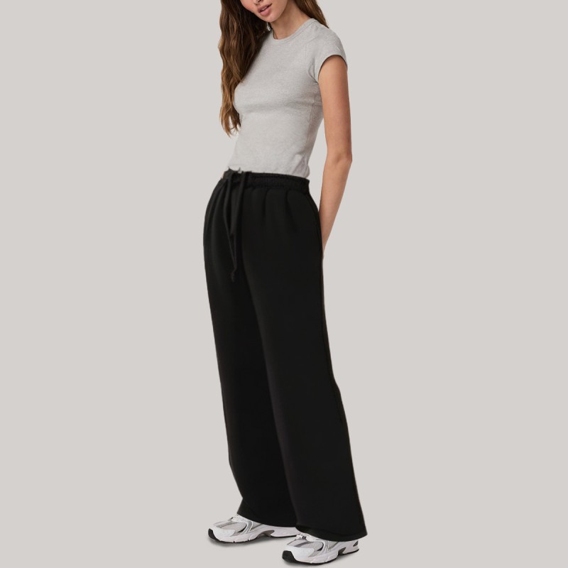 These women's sweatpants feature a simple, solid-color design, versatile and stylish, showcasing a natural and casual style. The elastic waistband with drawstring allows for easy adjustment of the fit, conforming to the waistline for a comfortable and relaxed fit. Practical side pockets are convenient for carrying small items. The soft lining provides excellent warmth and a skin-friendly feel, offering a comfortable wearing experience for everyday outings or light exercise in autumn and winter.