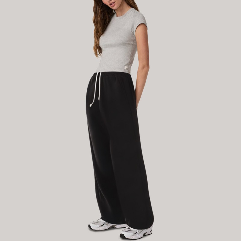 These women's sweatpants feature a minimalist design, making them versatile and easy to match with everyday casual wear or sportswear. The elastic waistband with drawstring allows for adjustable fit, ensuring a comfortable and snug fit. Side pockets provide convenient storage for small items while maintaining a minimalist style. The elasticated cuffs ensure a neat and tidy silhouette and freedom of movement. Made of soft, pure cotton, they are skin-friendly, breathable, and comfortable for all-day wear.