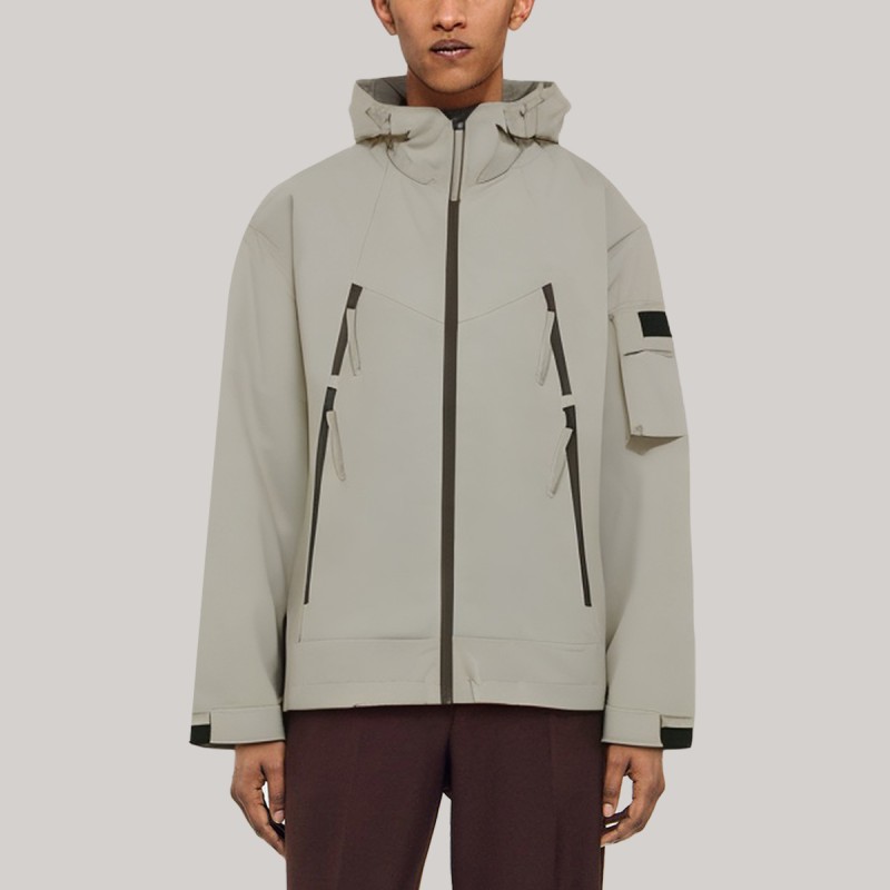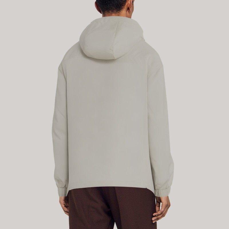 This men's windbreaker is designed with simplicity and practicality in mind, balancing comfort and functionality. The hooded design effectively protects against wind and rain, while the smooth zipper enhances ease of on and off. The overall lines are clean and sleek, showcasing a sharp outdoor style. The cuffs feature adjustable Velcro closures for enhanced warmth and protection; the hem has elastic buckles for adjustable fit, improving coverage and windproofing. Two practical zippered pockets provide convenient and secure storage for personal items, making it suitable for commuting, travel, and outdoor activities.