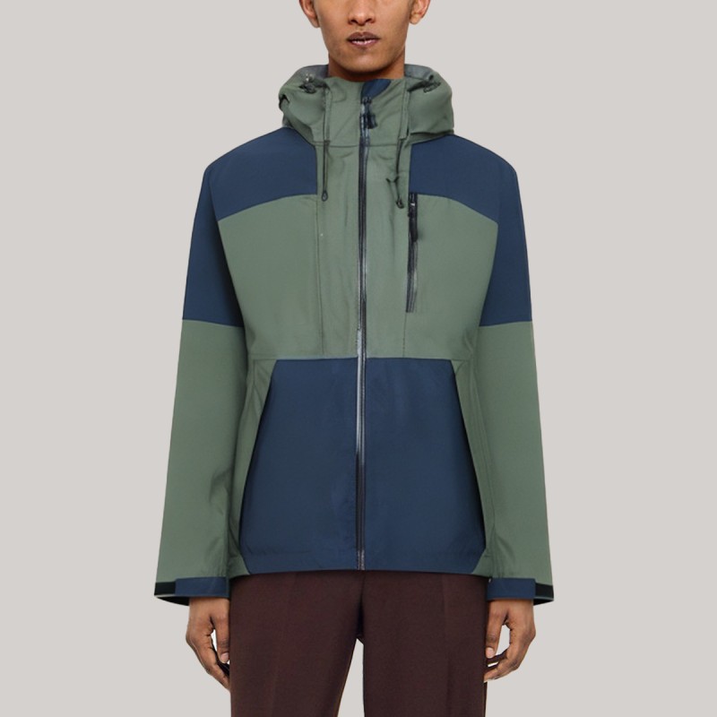 This men's windbreaker features a color-blocked design, creating a stylish and energetic outdoor look with a simple yet layered visual effect. It boasts a practical hood for effective protection against wind and rain; a smooth zipper makes it easy to put on and take off, enhancing everyday convenience. Two side pockets provide convenient storage for personal items. The overall cut is crisp and stylish, balancing comfort and practicality, making it suitable for both outdoor excursions and daily commutes.