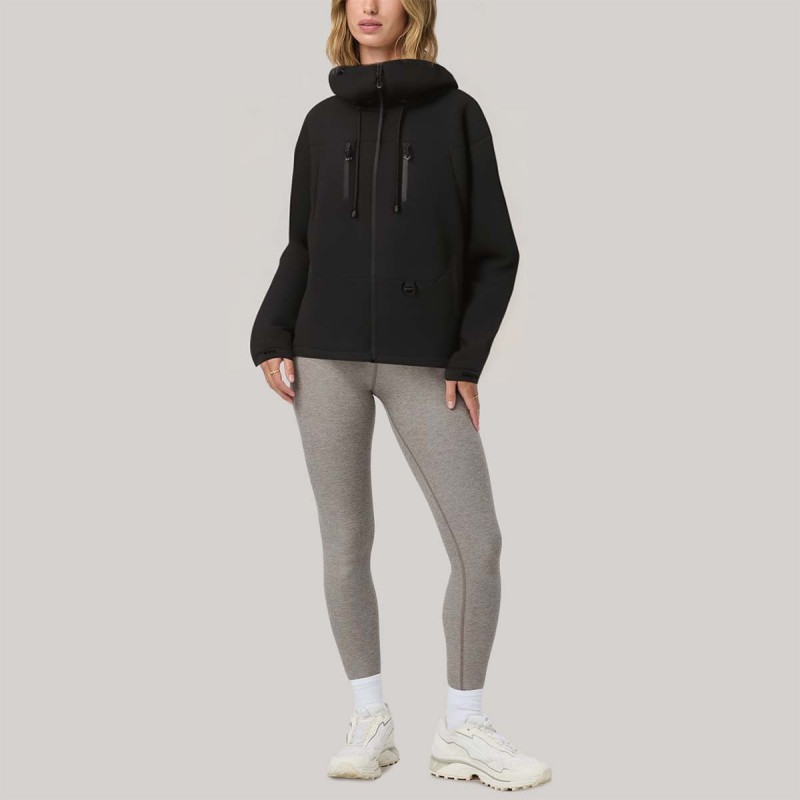 High-quality black hooded women's windbreaker
